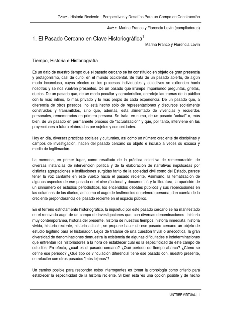 Franco Y Levin Historia Reciente Pdf Testimonio Historiografia
