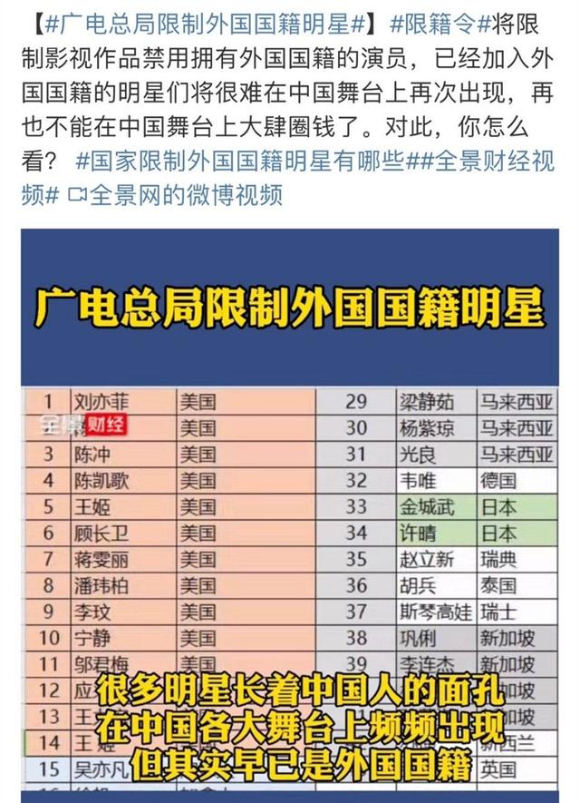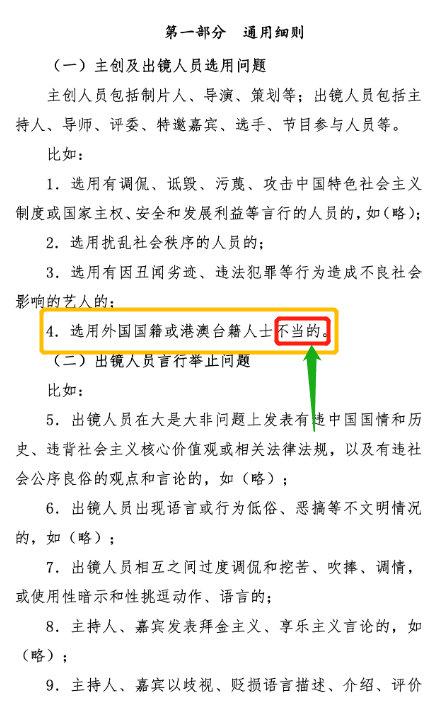 配图是李玟 美籍华裔 所以应该只要是外国籍都不行 老实也是美籍华裔. 的字眼但其实限薪令自从2018年颁布以来并没有进行过改动两项规定之间也没有什么联系 如果真要进行区分限薪令所代表的是对整个行业的规范后者仅仅是对网络综艺节目的内容进行要求 限籍令的内容规范了像奇葩说这样的.